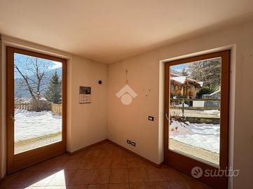 CARISOLO - A pochi passi dal centro di Carisolo, in posizione tranquilla e molto soleggiata, proponiamo in vendita accogliente appartamento trilocale al piano terra con giardino privato ben esposto al sole.