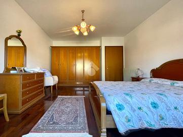 Dal soggiorno si accede a un terrazzo che avvolge l'appartamento su tre lati, offrendo uno spazio esterno unico e la seconda porta finestra direttamente dalla camera matrimoniale, che gode di luce naturale e privacy.