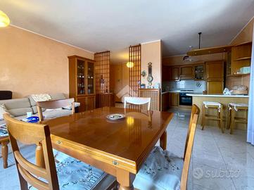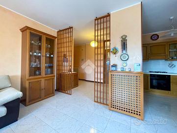 La zona giorno, luminosa e accogliente, si compone di un ampio soggiorno con area pranzo e cucina open-space con penisola, ideale per momenti conviviali e pasti veloci.