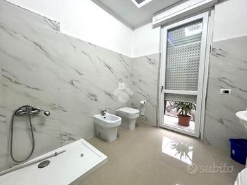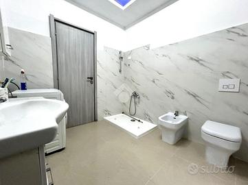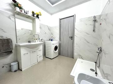 Il bagno è funzionale e dotato di tutto il necessario per il benessere quotidiano e anch'esso ha l'accesso su un balcone.
