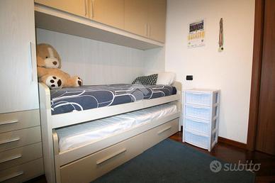 La zona notte si compone di bagno completo di vasca, due camere da letto entrambe rifinite in parquet, ed un secondo bagno dotato di piatto doccia.