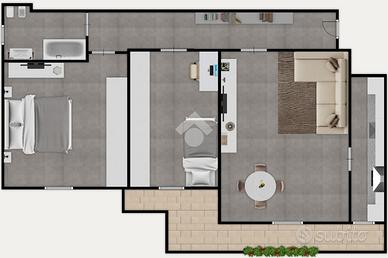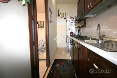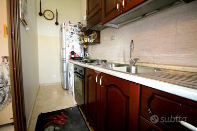 L'ingresso si apre su un ampio disimpegno che conduce alla luminosa zona giorno, composta da soggiorno con angolo cottura e accesso al balcone. La zona notte ospita una spaziosa camera matrimoniale, una cameretta e un bagno finestrato completo di vasca.