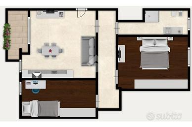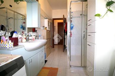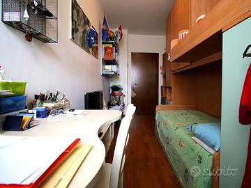 Un pratico disimpegno introduce alla zona notte, dove troviamo una camera matrimoniale, una cameretta, entrambe rifinite in parquet, e un bagno finestrato completo di piatto doccia.