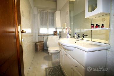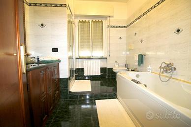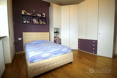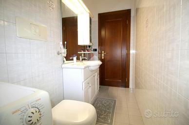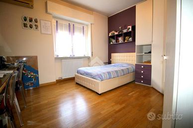 La zona notte è composta da due camere da letto di generosa metratura, entrambe rifinite con parquet. La camera matrimoniale dispone di cabina armadio e balcone.