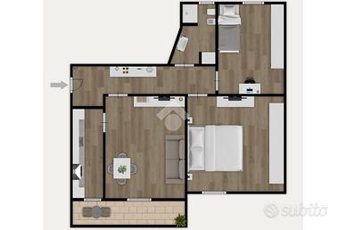 La soluzione si distingue per l'ottima distribuzione degli spazi e la funzionalità degli ambienti.