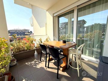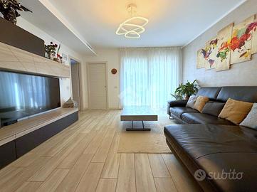 CARONNO: elegante abitazione disposta su un unico livello, caratterizzata da ambienti raffinati e luminosi grazie alla tripla esposizione. Le ampie vetrate valorizzano ogni spazio, lasciando filtrare luce naturale e creando un'atmosfera accogliente e armoniosa. L'immobile vanta un terrazzo privato, ideale per vivere momenti di relax all'aperto e godere appieno degli spazi esterni. Inserita all'interno di una palazzina di nuova realizzazione, servita da ascensore e situata in un contesto tranquillo e residenziale, la soluzione si distingue per l'attenzione nella scelta dei materiali e per le finiture di alto livello. La disposizione interna è così composta: soggiorno con accesso diretto al terrazzo, comunicante con la cucina abitabile; proseguendo, troviamo la camera matrimoniale dotata di balcone, bagno privato e cabina armadio. Completa la zona notte una cameretta e un bagno padronale con piatto doccia. A completare la proprietà, cantina e box auto doppio. Dotazioni e comfort: videocitofono, riscaldamento a pavimento, aria condizionata e finiture extra capitolato.