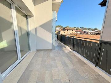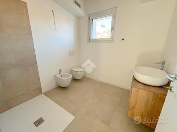 Questa soluzione moderna e raffinata è composta da un ingresso indipendente con portoncino blindato, una luminosa zona giorno con grande porta finestra che dà sul balcone di grandi dimensioni, un comodo bagno già arredato con doccia, un ulteriore servizio igienico, angolo lavanderia, camera da letto singola con affaccio su un comodo balcone e camera da letto matrimoniale.