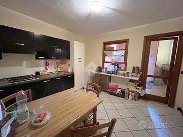 Al piano primo si sviluppa l'appartamento, ad oggi locato, composto da ampio ingresso che da sul soggiorno, separato dalla cucina abitabile. La zona notte è composta da due camere da letto matrimoniali e infine completa il tutto il bagno finestrato con vasca.