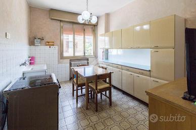 L'immobile, costruito nel 1970, si presenta esternamente in buonissime condizioni a seguito di interventi che hanno interessato il rifacimento dell'intonaco e i balconi. Internamente l'appartamento si trova in discrete condizioni interne sviluppando un corridoio centrale che distribuisce i vari ambienti: cucina abitabile, sala con balcone, due camere da letto matrimoniali e bagno. Il riscaldamento autonomo assicura una gestione efficiente dei consumi.