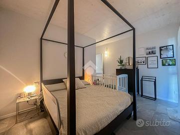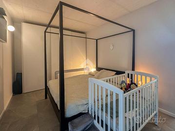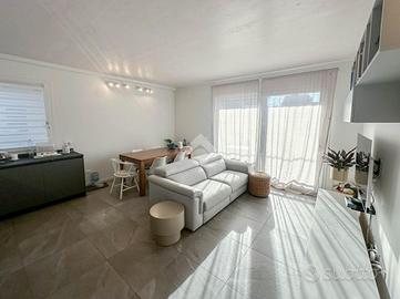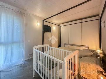 Gli spazi interni comprendono due camere da letto, una matrimoniale e una singola, un bagno dotato di doccia e antibagno dedicato a lavanderia, e una luminosa zona giorno open-space con accesso al balcone.