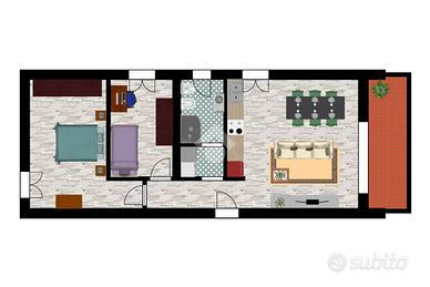 L'abitazione di circa 60 mq. calpestabili si rivolge prevalentemente ad una giovane coppia che potrà sicuramente apprezzare le moderne finiture e la particolarità del soffitto di legno sbiancato.