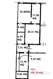 L'immobile è privo di spese condominiali e con il riscaldamento autonomo, molto grande si divide in ampia sala, cucina abitabile separata, due bagni completi, due camere da letto e il ripostiglio.