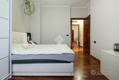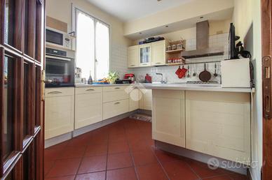 L'immobile si divide in ampia sala luminosa, cucina abitabile separata, due camere matrimoniali e due bagni finestrati. Una comoda cantina al piano interrato, posto auto e garage privati al piano terra.