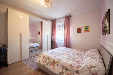 L'appartamento è composto dalle classiche metrature 'di una volta': ingresso, soggiorno, cucina abitabile con balcone (con sfogo anche sul salotto), disimpegno notte, 2 camere da letto matrimoniali e bagno. Garage singolo al piano terra.