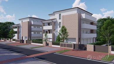 CARPI VIA TERESA NOCE - Visto l'enorme successo incontrato con il 'Residenziale Antares' attualmente in corso di ultimazione, abbiamo deciso di dare vita sul lotto attiguo ad un nuovo progetto denominato 'Residenziale Andromeda', dal quale riprende la medesima filosofia costruttiva. Le linee moderne incontrano lo stile classico in questa elegante palazzina di sole 6 unità con ascensore che sorgerà in via Teresa Noce in zona Morbidina con una consegna prevista per giugno 2028. La filosofia che ci ha ispirato nel replicare questa palazzina è stata dettata dall'apprezzamento del precedente progetto ed anche dalle richieste ricevute ultimamente dalla nostra clientela alla ricerca di un nuovo contesto di piccole dimensioni. Il ritorno ad uno stile classico senza tempo, l'utilizzo della faccia vista anticata, il tetto a falda in legno, e soprattutto proporre importanti zone giorno con comodi terrazzi anche coperti o giardino privato. La palazzina è stata progettata per garantire il massimo efficientamento energetico e il minor impatto ambientale, grazie anche l'utilizzo del prodotto YTONG, ovvero blocchi di calcestruzzo aerato autoclavato, un materiale totalmente naturale con tutte le caratteristiche richieste dal moderno concetto di costruzione efficiente. L'appartamento che qui vi presentiamo è posto al 2° piano e gode di tre lati liberi con esposizione nord-ovest-sud. L'ingresso è diretto in un'ampia zona giorno, luminoso ambiente open-space di oltre 30 mq. che si affaccia sul terrazzo di quasi 30 mq., ideale da sfruttare con la propria famiglia e amici nei mesi caldi. Nel reparto notte sono presenti due camere da letto matrimoniali e due bagni. Completano questa proposta al piano terra il garage per un'auto dotato di portone sezionale automatizzato e il posto auto scoperto ubicato all'interno della zona comune. L'impianto in pompa di calore è del tipo autonomo e disporrà di 3 kw. di fotovoltaico dedicato per la gestione dell'abitazione, della climatizzazione estiva