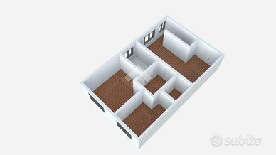 La zona giorno è composta da soggiorno e cucinotto separati mentre la zona notte comprende una camera matrimoniale, una seconda stanza che può essere utilizzata come studio o all'occorrenza come camera da letto e un bagno finestrato.
