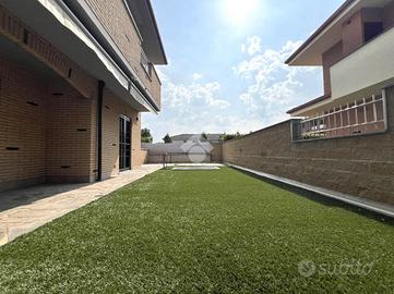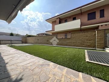 Posizionato in un contesto condominiale circondato da parchi pubblici e piste ciclabili, all'interno di una recente mini-palazzina del 2016 ad alto risparmio energetico, di sole 4 unità abitative, con facciata completamente in mattoni a vista, proponiamo FAVOLOSO appartamento di tre locali al piano terra con GIARDINO PRIVATO e tripla esposizione solare. L'immobile si posiziona al piano terreno e si compone da ingresso sul soggiorno, esposto a SUD, che da accesso al PATIO LOGGIATO ed al GIARDINO PRIVATO accessoriato con tende da sole motorizzate, cucina abitabile sempre esposta a sud e con accesso al GIARDINO PRIVATO, il disimpegno zona notte serve le due camere da letto sempre con porta finestra che porta all'area esterna e il bagno finestrato. A completare la soluzione è presente l'ampia cantina già compresa nel prezzo e il box doppio in lunghezza da 40 mq al prezzo di 25.000,00. L'appartamento è già accessoriato con inferriate di sicurezza, aria condizionata, tende da sole esterne motorizzate, finiture extra-capitolato, tapparelle elettriche, infissi basso-emissivi, riscaldamento a pavimento termoautonomo. Possibilità di arredo cucina e arredo bagno. Bassisime spese. Libero subito! Da vedere!