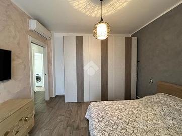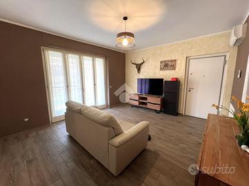 Posizionato in un contesto condominiale circondato da parchi pubblici e piste ciclabili, all'interno di una recente mini-palazzina del 2016 ad alto risparmio energetico, di sole 4 unità abitative, con facciata completamente in mattoni a vista, proponiamo FAVOLOSO appartamento di tre locali al piano terra con GIARDINO PRIVATO e tripla esposizione solare. L'immobile si posiziona al piano terreno e si compone da ingresso sul soggiorno, esposto a SUD, che da accesso al PATIO LOGGIATO ed al GIARDINO PRIVATO accessoriato con tende da sole motorizzate, cucina abitabile sempre esposta a sud e con accesso al GIARDINO PRIVATO, il disimpegno zona notte serve le due camere da letto sempre con porta finestra che porta all'area esterna e il bagno finestrato. A completare la soluzione è presente l'ampia cantina già compresa nel prezzo e il box doppio in lunghezza da 40 mq al prezzo di 25.000,00. L'appartamento è già accessoriato con inferriate di sicurezza, aria condizionata, tende da sole esterne motorizzate, finiture extra-capitolato, tapparelle elettriche, infissi basso-emissivi, riscaldamento a pavimento termoautonomo, arredo cucina e arredo bagno, bassisime spese.