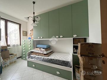 In pieno centro paese, nelle immediate vicinanze di tutti i servizi del paese, all'interno di una mini palazzina del 2000, proponiamo OTTIMO appartamento di tre locali con due balconi e tripla esposizione solare che garantisce notevole luminosità. L'immobile si posiziona al primo piano e si compone da soggiorno con angolo cottura che accedono al primo balcone esposto a ovest con visuale libera, il disimpegno zona notte, dotato di nicchia lavanderia/ripostiglio, serve la camera da letto matrimoniale con balcone, la seconda camera e il bagno. Completa la soluzione la cantina. L'appartamento ha il riscaldamento autonomo e viene venduto già dotato di diversi accessori e arredi quali aria condizionata, tenda da sole motorizzata, arredo cucina con elettrodomestici a incasso e arredo bagno. LIBERO A BREVE.