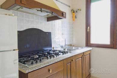 L'alloggio è ubicato al piano rialzato di un condominio senza l'ascensore ed è composto da cucina abitabile con sala da pranzo ed uscita sul balcone. Le due camere da letto sono matrimoniali. Il bagno ha la doccia.