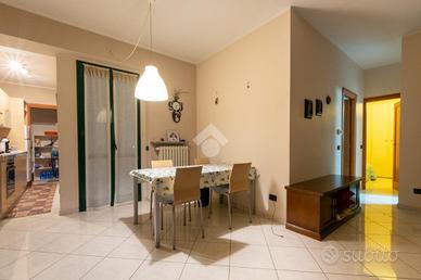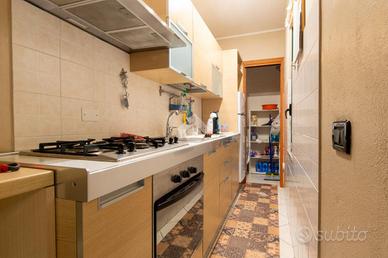 L'ingresso si apre direttamente su un ampio e accogliente soggiorno, caratterizzato dalla doppia esposizione verso l'esterno. Da qui si accede infatti ai due balconi: uno rivolto verso la via principale e l'altro affacciato sul riservato cortile interno. Adiacente alla zona giorno troviamo il cucinino, uno spazio funzionale che comunica con un ripostiglio, dove nel 2021 è stata installata una moderna caldaia a condensazione.