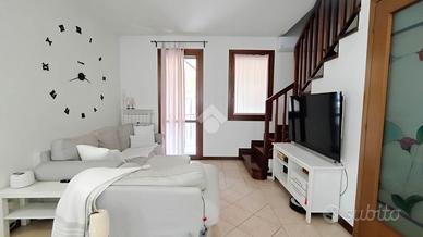 Proponiamo appartamento trilocale sviluppato al primo piano e mansarda, con accesso semi-indipendente al piano terra, in contesto condominiale del 1995, composto da sole 6 unità abitative.