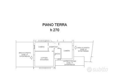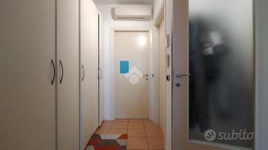L'immobile con accesso indipendente, si compone di ingresso su soggiorno con angolo cottura, ampio disimpegno con armadio e split dell'aria condizionata, camera matrimoniale con accesso allo scoperto privato, camera singola e bagno finestrato con doccia.