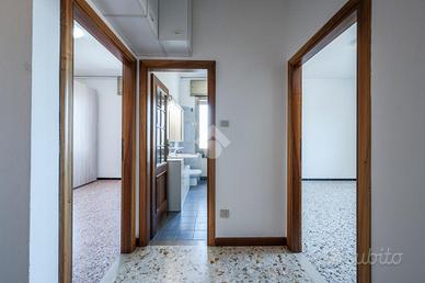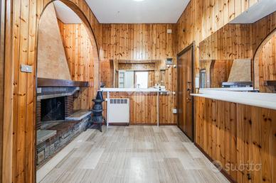 Dall' ingresso arredabile, nel quale è presente un caminetto a legna, si accede alla zona soggiorno composta da cucinotto e tinello con accesso al balcone, il disimpegno della zona notte porta a due camere da letto, un ripostiglio ed il bagno.