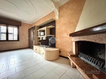 La casa è ubicata al pino primo di un piccolo cortile di sole 3 unità, al piano terra di box esclusivo e da qui accesso alla casa. Si dispone con una comoda cucina abitabile, primo bagno attrezzato da sanitari e doccia, grande sala con camino e zona notte composta da due camere da letto di generosa metratura ed il secondo bagno, non finestrato.