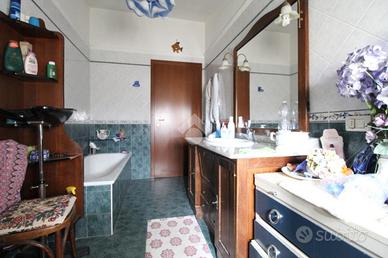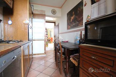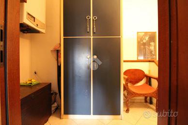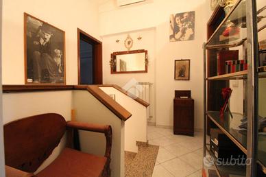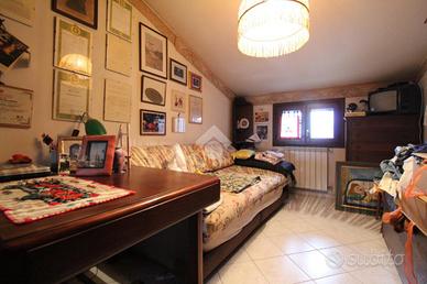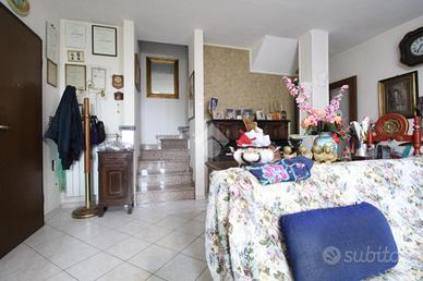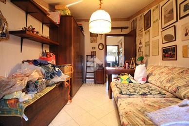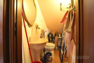 SALVATERRA: Rif. 156 in scala di tre unità, appartamento su due livelli, composto da: Piano primo: ingresso su soggiorno di 30 mq. con balcone (con possibilità di angolo cottura), cucinotto con balcone (può diventare un bagno), ripostiglio con lavandino e water; Piano secondo: sottotetto, altezza minima 1,80 mt., massima 3 mt. con due camere (mq. 12+20) e bagno. Cantina e garage. Possibilità opzionale di ulteriore garage di 53 mq. con bagno, non adiacente alla abitazione, ma a 20 mt.