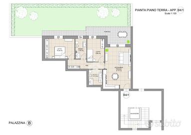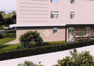 CASALGRANDE: In nuovo complesso immobiliare di quattro palazzine, servite da pedonali e giardini, appartamento in classe energetica A4 al piano terra, in zona tranquilla, comoda ai servizi e al centro del paese, con riscaldamento autonomo a pavimento e fotovoltaico privato. Composto da; soggiorno con angolo cottura di 27 mq., disimpegno, due camere e due bagni. Portico e giardino privato di 94 mq. Consegna a fine 2027, finiture interne personalizzabili. Garage al piano interrato di 20 mq.