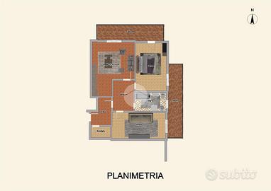 Internamente composto da ingresso, soggiorno con angolo cottura e accesso all'ampio balcone perimetrale, due camere, bagno finestrato con vasca, ripostiglio e terrazza vivibile di circa 100 mq.