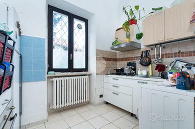 L'alloggio sorge all'interno di un cortile di corte ed è sito in una delle vie centrali del paese, rimanendo così comodo a tutti i servizi che quest'ultimo offre. L'appartamento si trova al piano terra e si sviluppa su un unico piano abitativo. L'ingresso all'alloggio si effettua tramite un balcone verandato: All'interno dell'abitazione è presente un disimpegno che collega i vari ambienti della casa: la zona giorno è costituita da un'amia cucina abitabile e la zona notte presenta invece due spaziose camere da letto, una delle quali è possibile adibire a soggiorno, in base alle proprie esigenze. Il bagno è dotato di piatto doccia. Il riscaldamento è autonomo. Questa soluzione si caratterizza per la quasi totale assenza di spese condominiali, ad accezione della luce scale. Sono già iniziati i lavori per il rifacimento di alcune parti comuni quali la facciata interna e il portone d'ingresso nella corte; la facciata esterna è appena stata rivista, il tutto a carico dell'attuale proprietà. Completa la soluzione un posto auto singolo privato all'interno del cortile condominiale. Questa casa è ideale per chi cerca un piccolo alloggio, anche per uso investimento, in un contesto privato e tranquillo, ma comunque prossimo a tutti i negozi ed ai mezzi.