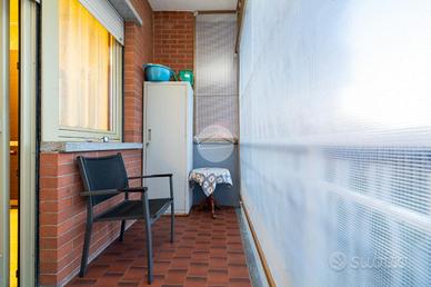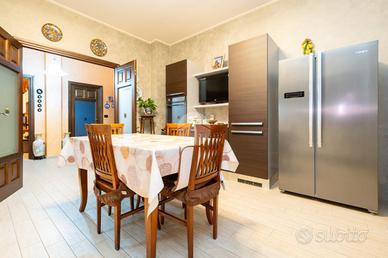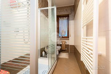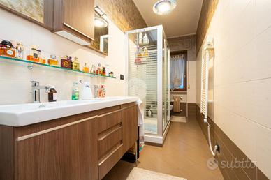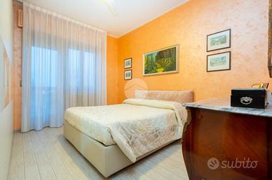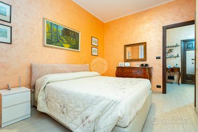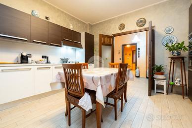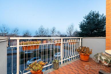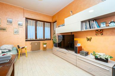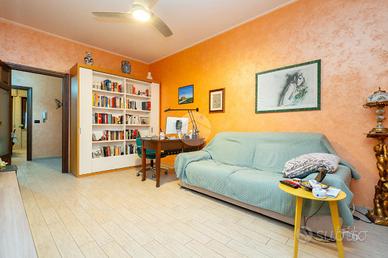 L'alloggio si trova al secondo piano di una palazzina degli anni '70 che è stato oggetto di lavori di riqualificazione, come ad esempio il cappotto esterno che limita la dispersione di calore. L'immobile si trova nei pressi della stazione e prossimo a tutti i servizi che il paese è in grado di offrire, rimanendo però fuori dalla rotta aerea. Lo stabile è dotato di ascensore. L'appartamento è stato ristrutturato nel 2011 con materiali di pregio. Il portoncino blindato da accesso al disimpegno che collega tutti gli ambienti della casa. La cucina è ampiamente abitabile ed è in grado di ospitare una cucina lineare, un mobile tv ed un tavolo con quattro sedie. Dalla cucina si accede al balcone verandato. La zona notte è invece composta da due ampie camere da letto, una delle quali attualmente adibita a soggiorno/studio. Da entrambe le camere si accede al secondo balcone che affaccia sulla via. Il bagno finemente rivisto è finestrato e completo di box doccia. Completa il piano abitativo un vano ripostiglio/lavanderia. Il riscaldamento è centralizzato ma regolabile con le termovalvole. La cantina al piano interrato è di generose dimensioni. Il box auto singolo completa la proprietà. L'alloggio presenta ambienti luminosi ed ariosi, grazie alla presenza di finestre e porte finestre in ogni stanza.
