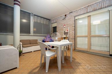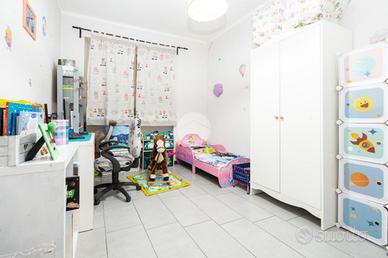 L'alloggio si trova al primo piano di una palazzina di recente costruzione dotata di ascensore e sita in una zona residenziale del paese, lontana dal caos cittadino. Il portoncino blindato da accesso all'ampia zona giorno composta dalla zona relax con divano e parete attrezzata per la tv e dalla cucina lineare ed un tavolo. Da questo ambiente si accede al terrazzo di generose dimensioni dotato di tende invernali ed estive; ideale da sfruttare nelle belle giornate di sole. Il disimpegno conduce alla zona notte composta da due camere da letto, di cui un con balcone ampio. Il bagno è finestrato e presenta la doccia. Completa il piano abitativo uno spazioso ripostiglio situato all'ingresso. Il riscaldamento è a pavimento e l''immobile è dotato anche dell'impianto di deumidificazione e di raffrescamento. La cantina ed il box auto singolo completano la proprietà. La palazzina presenta inoltre i pannelli fotovoltaici ad uso condominiale per la gestione dell'acqua calda. Questo immobile è ideale per chi cerca un contesto tranquillo, fuori dalla rotta aerea, usufruendo di tutte le potenzialità tipiche delle recenti costruzioni.