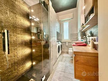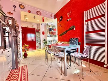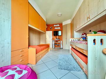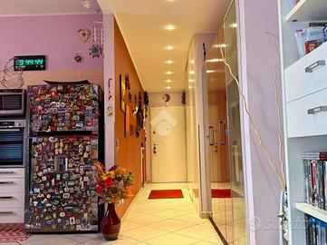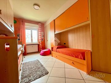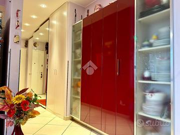 COMPOSIZIONE IMMOBILE: Ingresso con mobili fissi e ribassamento con luci a led, cucina abitabile, ampio soggiorno molto luminoso dal quale si accede sul primo terrazzino esposto ad est, disimpegno, bagno, due camere da letto molto spaziose e secondo terrazzino di servizio. Al piano interrato cantina di 7 mq e box singolo di 12 mq.