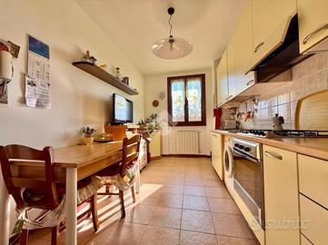 CASIRATE D'ADDA Centro 'Fronte Parco degli Alpini': In una delle zone residenziali più belle del paese (adiacenti scuole, posta, banche, mezzi di trasporto e negozi di prima necessità), proponiamo in vendita appartamento di 75 mq posto in piccola palazzina signorile edificata nel nel 2000 e dotato di ampia cantina e box di proprietà. L'immobile, esposto a sud con affaccio magnifico sul parco degli Alpini, vanta inoltre una tripla esposione sud, ovest e nord ed è collocato al primo ed ultimo piano di questa palazzina tenuta in ottimo stato di manutenzione e con spese condominiali davvero molto basse. COMPOSIZIONE: Ingresso sul luminosissimo soggiorno con accesso sull'ampio balcone, cucina abitabile, disimpegno, due camere da letto, secondo balcone e cantina di 5 mq e box singolo di proprietà di mq 15. ULTERIORI INFORMAZIONI: Riscaldamento autonomo con spese condominiali annue di 450 euro, cancello carrale elettrico, serramenti in legno con doppi vetri, tenda da sole sul balcone a sud, impianto di climatizzazione, porta blindata, tripla esposizione, primo piano ed ultimo. Questo appartamento è ideale per delle giovani coppie o per dei single che hanno l'esigenza di avere una stanza in più per utilizzarla a seconda delle proprie esigenze. Davvero notevole ed unico il contesto e soprattutto la tranquillità che si respira entrando in casa.