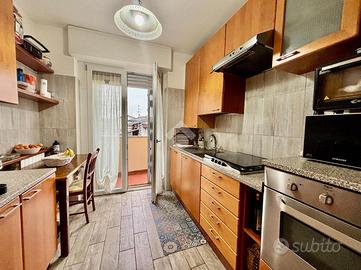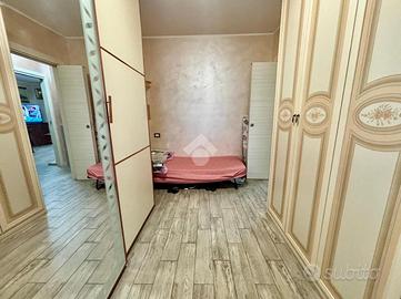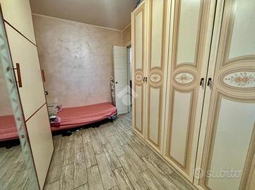 L'appartamento risulta essere così composto: Ingresso che si apre subito nella zona giorno con soggiorno con affaccio diretto al balcone e subito sulla sinistra cucina semiabitabile anch'essa con balcone. Proseguendo, tramite disimpegno, accediamo alla zona notte, caratterizzata da due camere da letto e un servizio finestrato con doccia.