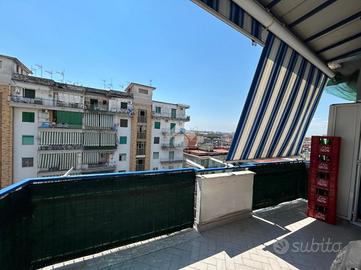 L'appartamento dei tuoi sogni nella zona che hai sempre desiderato. VIA PRINCIPE DI PIEMONTE La zona è tra le più richieste di Casoria; il palazzo signorile con lavori di ristrutturazione già deliberati è dotato di ascensore e di servizio di portineria . L'abitazione è posta al 7° piano ed offre una magnifica vista panoramica con uno spazioso balcone terrazzato. Le condizioni interne sono buone ed è dotata di diversi confort quali: tapparelle elettroniche, impianto di riscaldamento autonomo, impianto di condizionamento, pavimento uniforme per tutta la casa, infissi in alluminio anodizzato doppio vetro-camera e controsoffittatura. L'abitazione offre una quadratura di 95 mq divisi in questo modo: ingresso in un accogliente e spazioso salone, cucina con accesso anche dal soggiorno, due camere da letto di cui una con bagno in camera, secondo bagno con doccia e balcone terrazzato. A completare la soluzione troviamo un terrazzo di copertura in parte pavimentato con affaccio panoramico con vista Vesuvio di circa 160 mq. inoltre l'appartamento può essere venduto parzialmente arredato e con possibilità di fittare il posto auto.