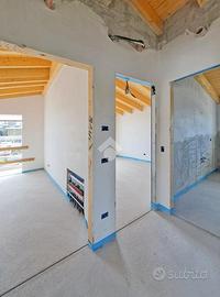In termini di climatizzazione le abitazioni saranno provviste di impianti di riscaldamento e raffrescamento a pavimento gestiti con l'ausilio di termostato dedicato e pompa di calore, mentre a soffitto sarà presente un sistema di ventilazione meccanizzata e deumidificazione. I serramenti esterni saranno in PVC con triplo vetro con apertura anche a ribalta e protetti da tapparelle in alluminio telecomandate tramite pulsante individuale su ogni infisso più uno generale posto all'ingresso.