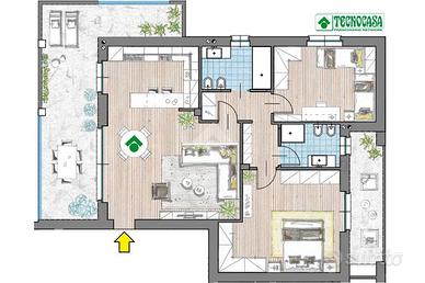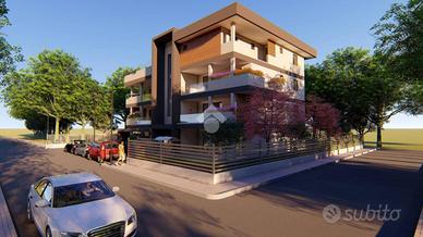 DETRAZIONE DI € 48.000,00 Moderna ed elegante mini-palazzina di nuova realizzazione in zona centrale e servita del paese. Con i suoi tre livelli fuori terra oltre il piano attico e quello interrato destinato a cantine ed autorimesse, l'edificio conta solo 7 unità abitative e vanta un aspetto in linea con il trend estetico attuale basato sull'orizzontalità e sulle coperture piane. L'involucro esterno è protetto da un efficiente isolamento termo-acustico ed è presente impianto fotovoltaico con sistema di "scambio sul posto" a supporto di una struttura "gas-free", anti-sismica e priva di barriere architettoniche grazie alla presenza di ascensore con arrivo ad ogni livello. Gli accessi sono automatizzati e quello pedonale accessoriato di videocitofono e cassette postali esterne. Le disponibilità sono di appartamenti di 3 locali con cucina abitabile a scelta tra soluzioni al piano terra con ampio giardino privato o ai piani superiori intermedi dove sarà possibile beneficiare di piacevoli terrazzi. Ogni appartamento sarà realizzato a misura e secondo i gusti del cliente potendo mettere a disposizione un capitolato di ottimo livello e un comparto accessori e dotazioni all'avanguardia. Le porte di ogni singola unità saranno blindate di classe 3 e dotate di serratura codificata europea e sarà predisposto impianto di allarme. Gli infissi esterni saranno in PVC con triplo vetro e protetti da tapparelle automatizzate in alluminio coibentato. Il telaio delle aperture darà la possibilità di installare delle zanzariere. I bagni, due per ogni appartamento e finestrati, saranno abbelliti da signorili termo-arredi a parete e sanitari sospesi. L'impianto elettrico sarà il fulcro delle dotazioni della casa e consentirà ottima autonomia di gestione grazie alla presenza di un quadro differenziato. Placchette e interruttori saranno di marca B-Ticino, serie "Now" e ci sarà impianto di TV Satellitare. Il riscaldamento sarà di tipo a pavimento con sistema collegato a pannelli fotovoltaici..