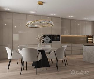 Moderna ed elegante mini-palazzina di nuova realizzazione in zona centrale e servita del paese. Con i suoi tre livelli fuori terra oltre il piano attico e quello interrato destinato a cantine ed autorimesse, l'edificio conta solo 7 unità abitative e vanta un aspetto in linea con il trend estetico attuale basato sull'orizzontalità e sulle coperture piane. L'involucro esterno è protetto da un efficiente isolamento termo-acustico ed è presente impianto fotovoltaico con sistema di "scambio sul posto" a supporto di una struttura "gas-free", anti-sismica e priva di barriere architettoniche grazie alla presenza di ascensore con arrivo ad ogni livello. Gli accessi sono automatizzati e quello pedonale accessoriato di videocitofono e cassette postali esterne. Le disponibilità sono di appartamenti di 3 locali con cucina abitabile a scelta tra soluzioni al piano terra con ampio giardino privato o ai piani superiori intermedi dove sarà possibile beneficiare di piacevoli terrazzi. Ogni appartamento sarà realizzato a misura e secondo i gusti del cliente potendo mettere a disposizione un capitolato di ottimo livello e un comparto accessori e dotazioni all'avanguardia. Le porte di ogni singola unità saranno blindate di classe 3 e dotate di serratura codificata europea e sarà predisposto impianto di allarme. Gli infissi esterni saranno in PVC con triplo vetro e protetti da tapparelle automatizzate in alluminio coibentato. Il telaio delle aperture darà la possibilità di installare delle zanzariere. I bagni, due per ogni appartamento e finestrati, saranno abbelliti da signorili termo-arredi a parete e sanitari sospesi. L'impianto elettrico sarà il fulcro delle dotazioni della casa e consentirà ottima autonomia di gestione grazie alla presenza di un quadro differenziato. Placchette e interruttori saranno di marca B-Ticino, serie "Now" e ci sarà impianto di TV Satellitare. Il riscaldamento sarà di tipo a pavimento con sistema collegato a pannelli fotovoltaici..