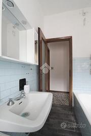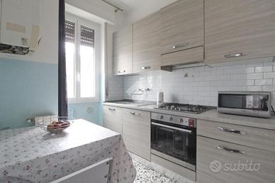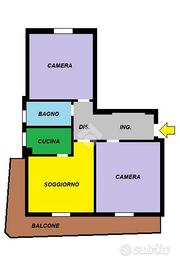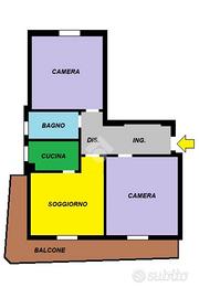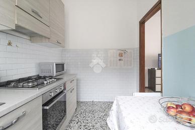 L'accesso alla casa dal pianerottolo condominiale invita ad un ampio ed arredabile ingresso con porta blindata che fa anche da disimpegno per raggiungere i vari locali. Il soggiorno, luminoso ed accogliente completa con il piccolo cucinotto quello che è il reparto giorno dell'abitazione. L'area notte invece mette a disposizione lo spazio di due grandi camere matrimoniali e il bagno completo di vasca.