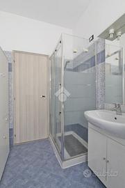 Il reparto notte si raggiunge oltrepassando un elegante arco illuminato da faretti e accedendo prima al disimpegno e poi alle due camere matrimoniali, con il secondo balcone, intervallate dal bagno dotato di box doccia.