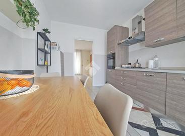 Le condizioni interne sono perfette e l'abitazione si presenta pronta all'uso. La porta di accesso è blindata e quelle interne si dividono tra la più tradizionale apertura a battente e quella più elegante e funzionale a scomparsa. Gli infissi esterni sono con doppio vetro e apertura a ribalta (bagno e cucina), protetti da persiane in legno mentre i pavimenti sono interamente ricoperti da una ceramica grigia molto delicata ed attuale. L'impianto elettrico è differenziato.