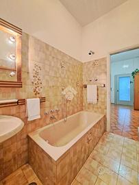 Il reparto notte è equamente proporzionato tra due capienti camere matrimoniali intervallate dal bagno con vasca.