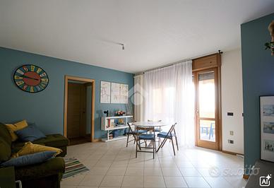 In palazzina nei pressi dell'area mercato, in una delle zone più servite della città. L'appartamento è posto al secondo piano con ascensore e si compone di cucina separata e abitabile, soggiorno con affaccio sul comodo terrazzino coperto, due camere da letto e bagno accessoriato di doccia. L'abitazione si presenta in ottime condizioni generali, dotato di riscaldamento autonomo, serramenti in doppio vetro, impianto di condizionamento e non necessita di alcun tipo di intervento. Di pertinenza un ampio box al piano interrato.