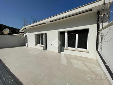 Cassino, zona Chiesa Madre. Proponiamo in esclusiva la vendita di un attico di circa 95 mq posto al quinto piano di un fabbricato dotato di ascensore ed interamente ristrutturato ai fini della riqualificazione energetica (rivestimento con cappotto termico, pannelli fotovoltaici, caldaia a condensazione modulare, infissi in PVC con vetrocamera basso - emissiva a triplo vetro e avvolgibili termoisolanti). L'immobile è composto da cucina, sala, due camere, bagno ed un terrazzo di circa 65 mq con affaccio panoramico su Montecassino. Lo stato interno è da ristrutturare