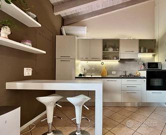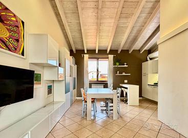 CASTEGNATO In posizione strategica, al confine tra Paderno Franciacorta e Rodengo Saiano, all'interno di un residence riservato e ben curato, proponiamo in esclusiva luminoso appartamento del 2005 sito a primo piano. Servita da ingresso semi indipendente, l'abitazione si apre su un'accogliente zona living con cucina a vista, salotto e sala da pranzo, completamente travi in legno a vista sbiancate. Libera su tre lati e godendo di ottima esposizione est-ovest, permettendo alla luce naturale di penetrare in ogni ambiente, regalando una sensazione di calore e ariosità. Tramite il corridoio armadiato con vano ripostiglio, si accede alla zona notte composta da una spaziosa camera matrimoniale con cabina armadio, una seconda camera di generose dimensioni e un bagno finestrato completo di vasca e zona lavanderia. A completare la proprietà, due posti auto esclusivi all'interno della corte contata. Possibilità di terzo posto auto privato. L'immobile si presenta in ottime condizioni manutentive, subito abitabile, con consegna prevista entro fine anno. APE in fase di elaborazione. Per ulteriori informazioni o per fissare una visita senza impegno, non esitare a contattarci