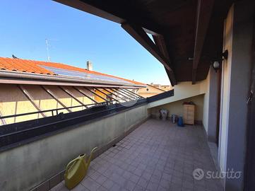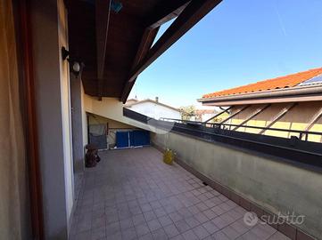 CASTEL D'AZZANO, BECCACIVETTA In contesto condominiale,situato in via tranquilla ma comoda a tutti i principali servizi; proponiamo in vendita uno spledito duplex del 2004 cosi disposto: soggiorno-cucina open space con balcone,ripostiglio, ampia camera singola e bagno finestrato con doccia. Al piano mansardato troviamo un comodo disimpegno che si puo adibire a camera, accesso diretto al terrazzo abitabile, un'ampia camera matrimoniale e un bagno finestrato con doccia. Completa la soluzione un box doppio in lunghezza e una cantina. L'immobile sarà libero a luglio 2026.